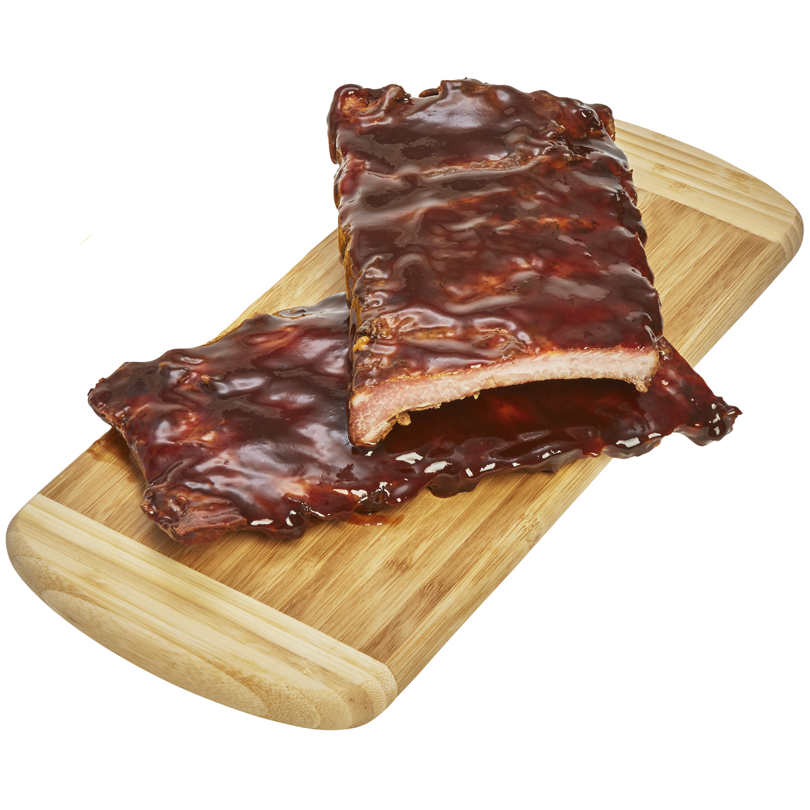 Tender ribs are cut and tossed in thick and rich BBQ sauce!