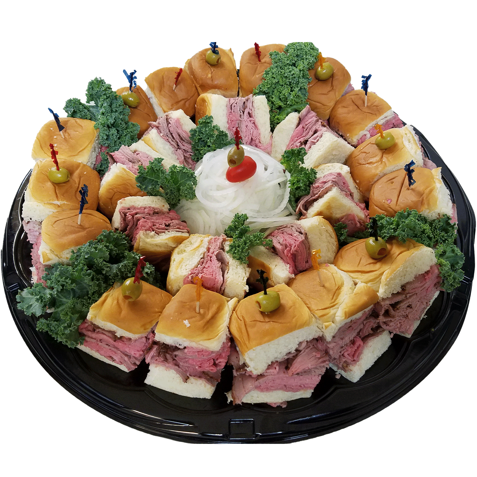 Our Signature Store Prepared Roasted Beef piled high! Served with Tiger Sauce and Raw Onion