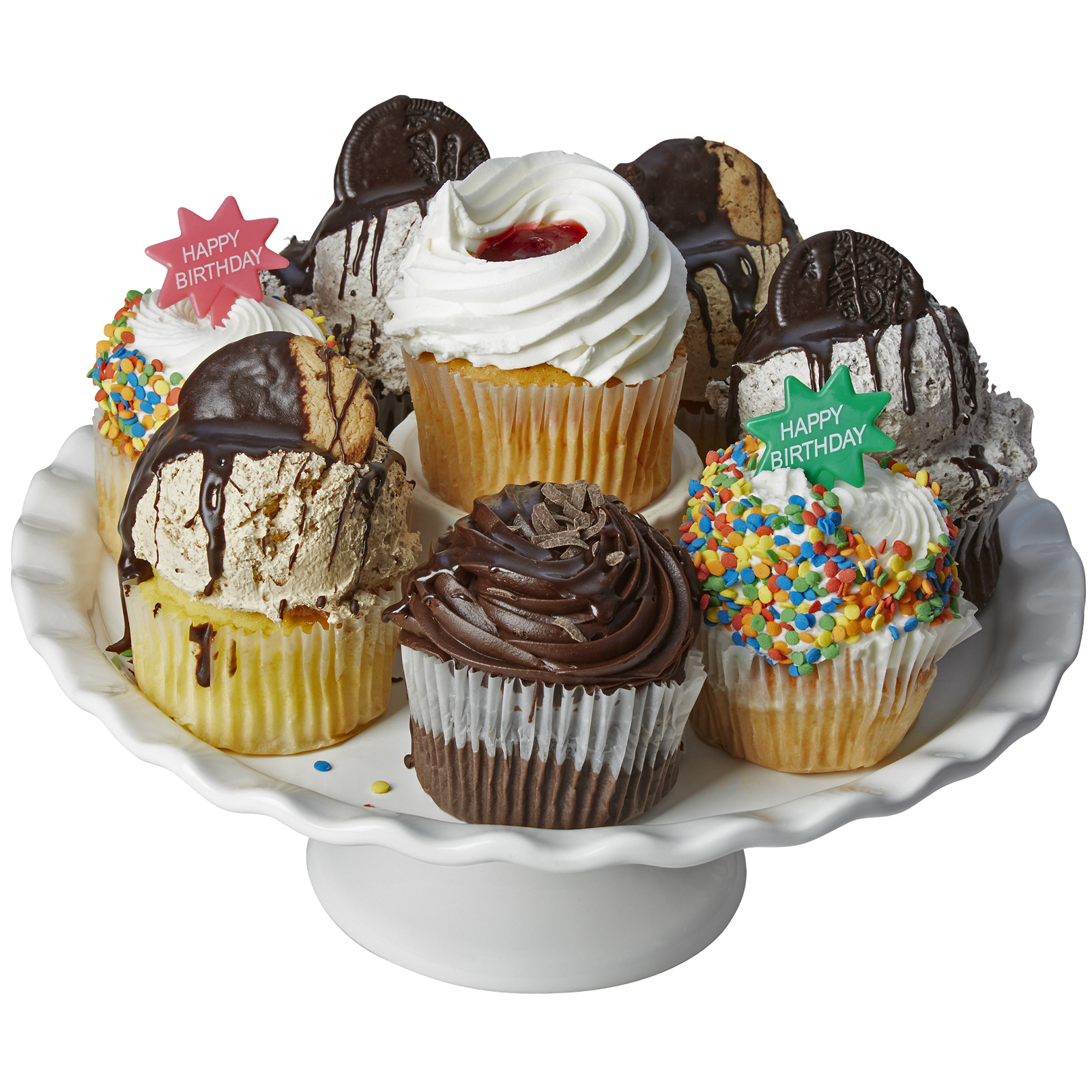 Our signature jumbo cupcakes are sure to please everyone! Fresh baked jumbo cupcakes are filled with assorted fruit and icing, then topped to create our festive and