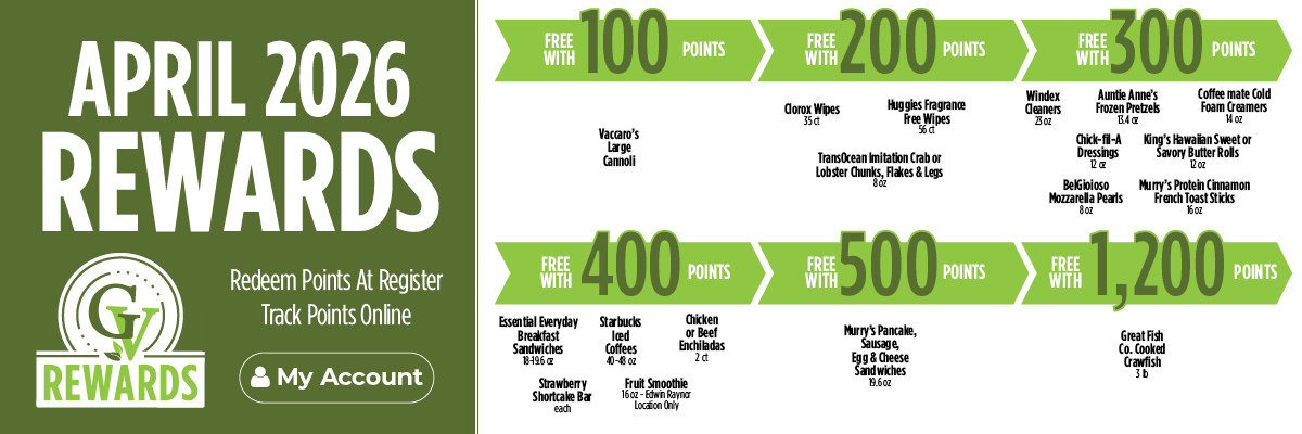 You can see what rewards are available at your Local Green Valley Register or you can look in the AppCard App.