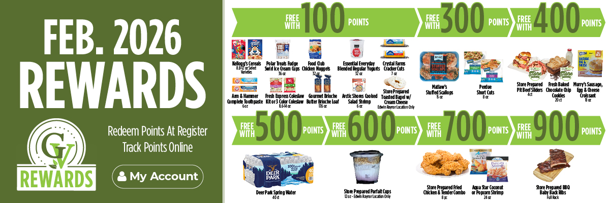 You earn points on ALL of your in-store purchases with the exception of tobacco, lottery, gift cards and services. There is no cap on how many rewards a shopper can earn!